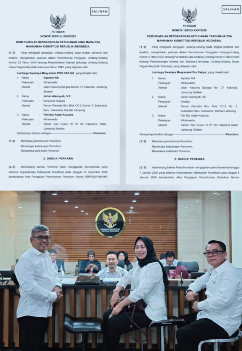 Dengan berakhirnya perkara Nomor 263/PUU-XXIII/2025 dan Nomor 16/PUU-XXIV/2026 pada putusan “Tidak Dapat Diterima”, LSM PRO RAKYAT menyatakan akan menyiapkan kembali permohonan uji materi dengan penyempurnaan aspek hukum acara, legal standing, serta sinkronisasi dalil dan tuntutan.