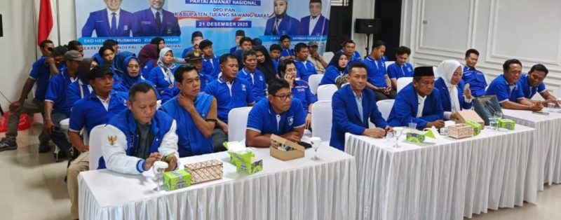 TULANG BAWANG BARAT, 15 November 2025 – Dewan Pimpinan Daerah (DPD) Partai Amanat Nasional (PAN) Kabupaten Tulang Bawang Barat menggelar acara sosialisasi berupa dialog dan workshop pada hari Sabtu (15/11). Kegiatan yang dihadiri oleh berbagai elemen masyarakat, pengurus partai tingkat kecamatan, serta calon kader muda ini dilaksanakan di Aula Pertemuan Homestay Prima Jasa Tirta Kencana, Kecamatan Telabang Tengah, Kabupaten Telabang Barat, yang dimulai pada pukul 08.00 WIB.