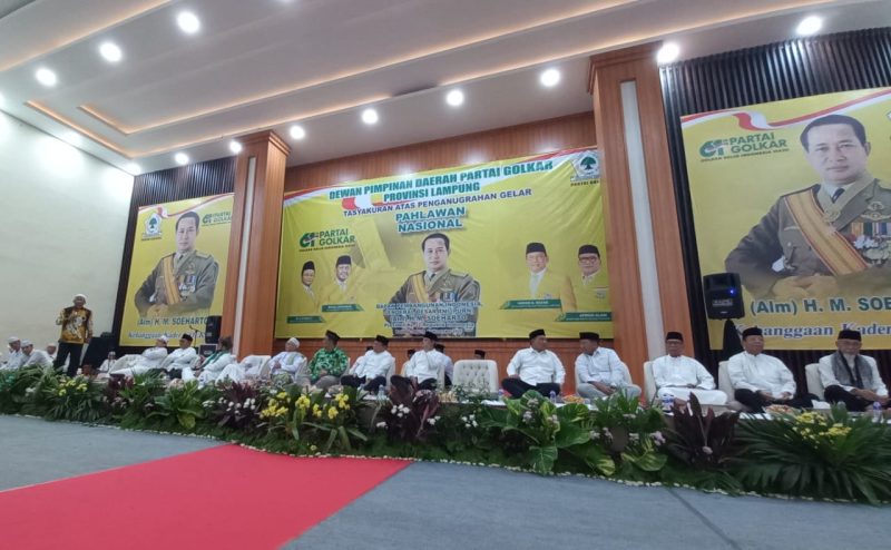 Bandar Lampung Seruntingnews .Id – Dewan Pimpinan Daerah (DPD) Partai Golongan Karya (Golkar) Provinsi Lampung menggelar acara tasyakuran dan doa bersama yang meriah dan sebagai ungkapan syukur dan apresiasi atas penganugerahan gelar Pahlawan Nasional kepada Presiden ke-2 Republik Indonesia, Jenderal Besar TNI H.M. Soeharto. Gelar tersebut secara resmi diberikan oleh Presiden Prabowo Subianto.
