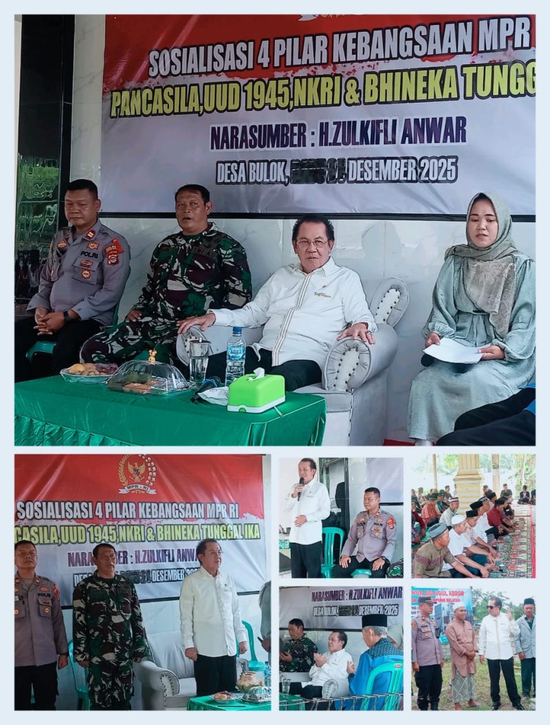 Lampung Selatan,Seruntingnews.id–Anggota DPR RI dari Fraksi DemokratH. Zulkifli Anwar dariDaerah Pemilihan (Dapil) Lampung 1 kembali menggelar sosialisasi 4 pilar MPR RI, bertempat di Yayasan Pondok Pesantren Nurul Bulugul Abror Desa Bulok, Kecamatan Kalianda Lampung Selatan, Selasa (23/12/2025).