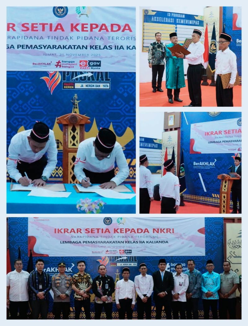 Dua orang Warga Binaan Pemasyarakatan (WBP) kasus terorisme di Lapas Kelas IIA Kalianda resmi menyatakan Ikrar Setia kepada Negara Kesatuan Republik Indonesia (NKRI) pad