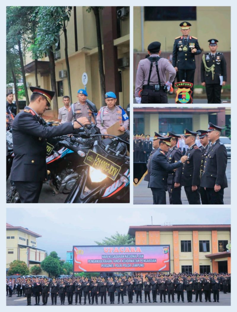 LAMPUNG, Seruntingnews.id– Kapolda Lampung Irjen Pol. Helfi Assegaf dan Wakapolda Lampung Brigjen Pol Sumarto pimpin pelaksanaan Upacara Hari Kesadaran Nasional serta Penganugerahan Tanda Kehormatan Satya Lencana Pengabdian bagi personel Polda Lampung.
