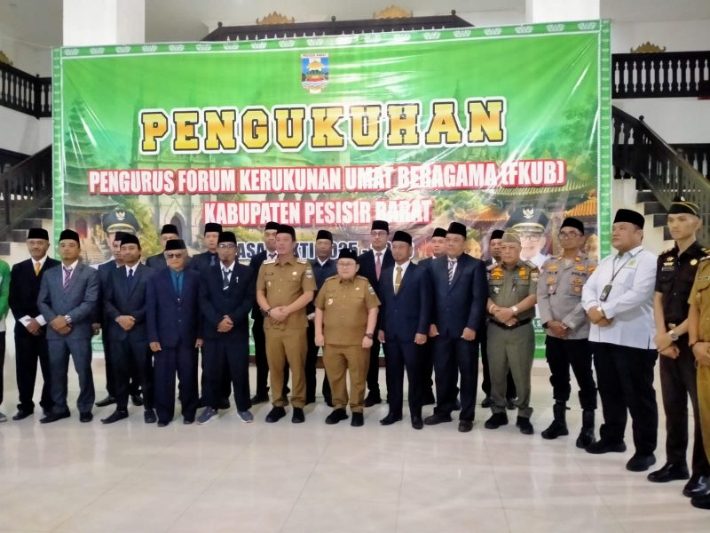 KRUI, Seruntingnews .Id.– Kabupaten Pesisir Barat kembali mempertegas komitmennya sebagai daerah yang menjunjung tinggi nilai-nilai keberagaman. Hal ini ditandai dengan pengukuhan Pengurus Forum Kerukunan Umat Beragama (FKUB) masa bakti 2025–2030 oleh Bupati Pesisir Barat dalam sebuah upacara yang penuh nuansa kebersamaan, baru-baru ini.