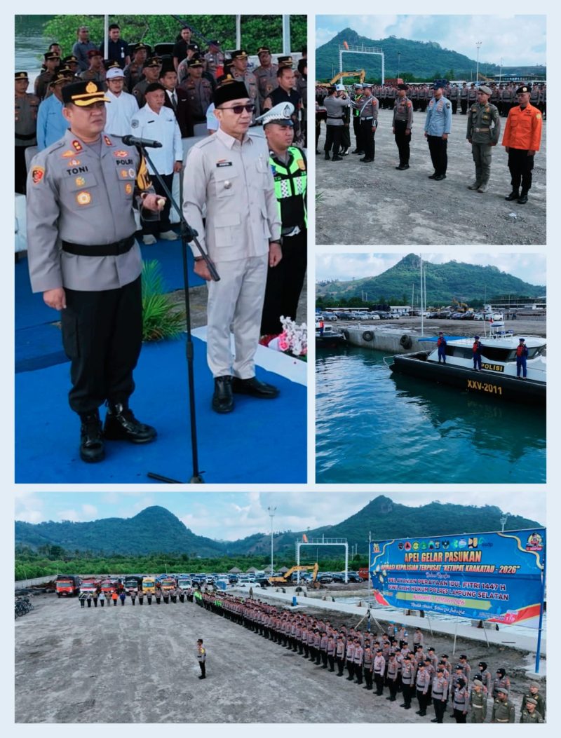 Hal tersebut disampaikan Kapolres Lampung Selatan saat memimpin Apel Gelar Pasukan Operasi Ketupat Krakatau 2026 yang digelar di Dermaga Pelabuhan PT SMA, Kecamatan Ketapang, Kabupaten Lampung Selatan, Kamis (12/3/2026).