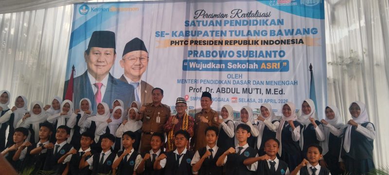 Tulang Bawang ,Serunting news.Id. — Peresmian Revitalisasi Satuan Pendidikan se-Kabupaten Tulangbawang melalui Program Hasil Terbaik Cepat (PHTC) Presiden Republik Indonesia Prabowo Subianto berlangsung khidmat dengan mengusung tema “Wujudkan Sekolah ASRI”. Kegiatan ini dipusatkan di halaman SMP Negeri 02 Menggala, Kecamatan Menggala, Kabupaten Tulangbawang, Selasa (28/4).