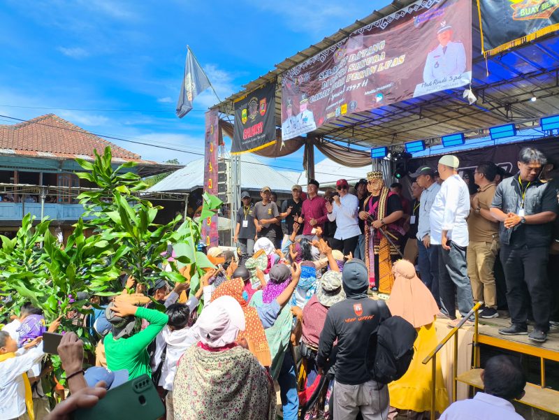 Sementara itu, di Pekon Sebarus, Kecamatan Balik Bukit, Wakil Bupati Mad Hasnurin hadir dalam suasana yang tak kalah semarak. Denting musik tradisional berpadu dengan sorak sorai warga yang menanti momen puncak: “cakak buah”.