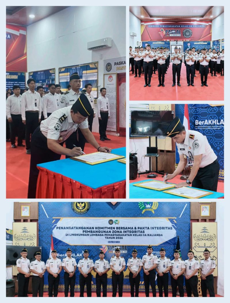 Kalianda,Seruntingnews.id –– Lembaga Pemasyarakatan Kelas IIA Kalianda melaksanakan kegiatan Penandatanganan Komitmen Bersama Pembangunan Zona Integritas menuju Wilayah Bebas dari Korupsi (WBK) dan Wilayah Birokrasi Bersih dan Melayani (WBBM) bertempat di Aula Lapas Kelas IIA Kalianda (5/2).