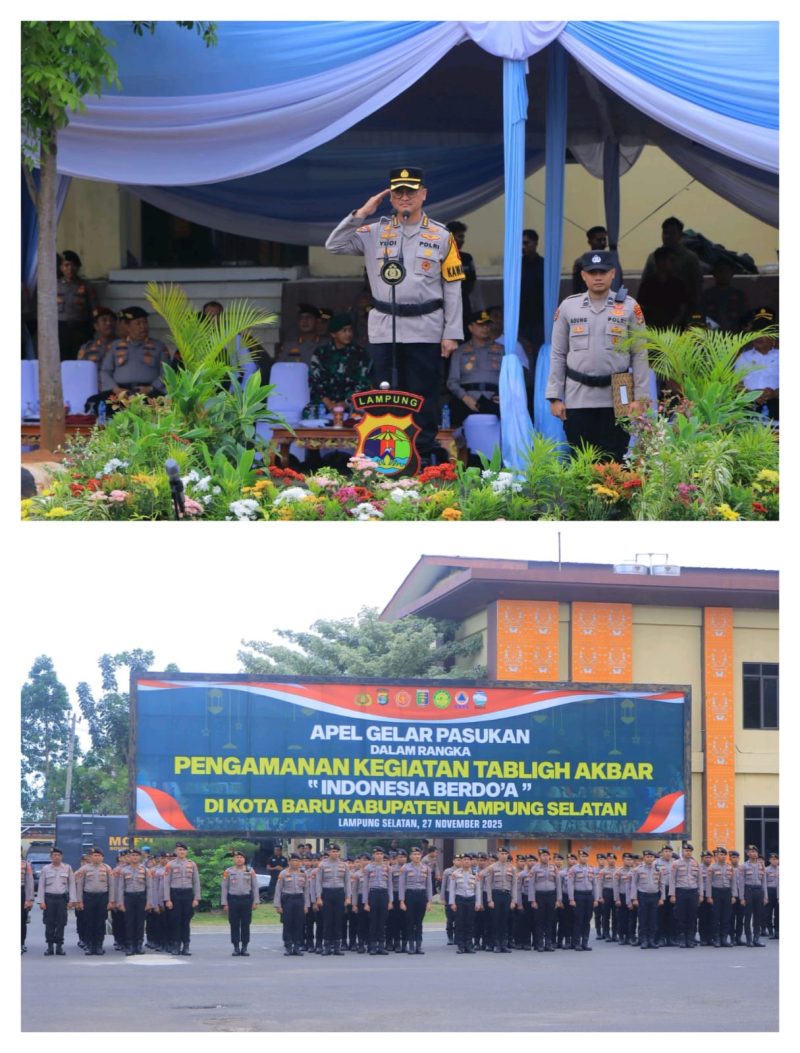 LAMPUNG, Seruntingnews id– Polda Lampung menggelar Apel Gelar Pasukan dalam rangka kesiapan pengamanan Tabligh Akbar “Indonesia Berdoa 2025” yang akan berlangsung di Kota Baru, Lampung Selatan, pada 28–30 November 2025. Kamis(27/11/25)