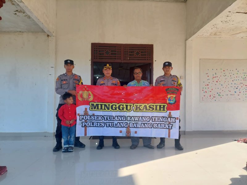 Tulang Bawang Barat Seruntingnews..Id.– Kapolsek Tulang Bawang Tengah beserta personil Polres Tulang Bawang Barat (Tubaba) Polda Lampung secara langsung melaksanakan pengamanan ibadah “Minggu Kasih” di Gereja Kristen Sumatera Bagian Selatan (GKSBS) Imanuel Tiyuh Tirta Makmur, Kecamatan Tulang Bawang Tengah.Minggu pagi (07/12/2025),
