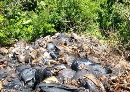 Berdasarkan pantauan ada sekitar dua titik lokasi pembuangan limbah kimia tersebut, dengan ratusan karung berisi limbah yang diperkirakan lebih dari 2 ton