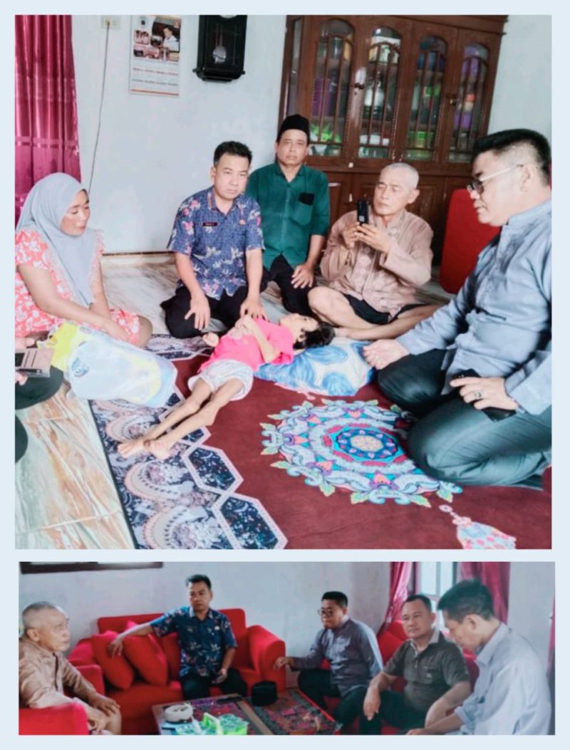 Camat Kalianda Ruris Apdani, S.Pd didampingi Sekretaris Kecamatan Kalianda, M.Nur dan Kepala Desa Merak Belantung, Joni Arizon mengunjungi anak yang bernama Alin Delisha Rafifa (10) mengalami lumpuh total, anak pasangan suami istri dari Zainal Abidin dan Meli. pada hari Sabtu, (18/10/2025).